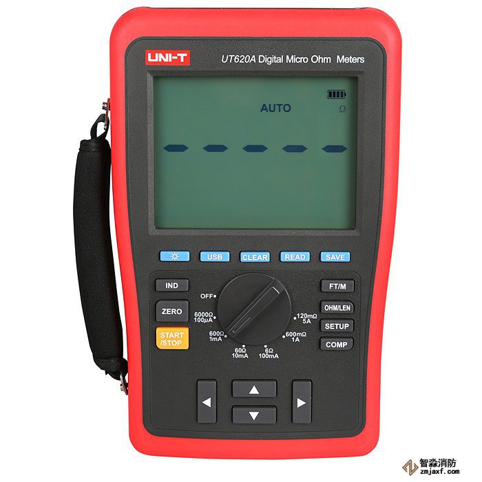 低欧姆表(毫欧表/微欧表),采用四线测量技术专门用于测量直流低电阻的仪器。低欧姆表测量电流达到5A 10uΩ分辨率,测量电流达到10A 1μ?分辨率,可对各种线圈的电阻提供高精度的测量。该系列产品具有比较功能,能自动判断产品是否合格;电线长度估算功能(FT/M),用测试结果来推断更长未知线缆的长度;USB接口输出,仪表能与PC双向交换数据;内置可充电锂电池,可循环使用等特点;便携性直流低电阻测试仪,可以用于窄小空间的室内环境,可方便地用于现场的故障排查。如:金属镀层电阻测量、电动机及小型变压器的绕组电阻测量、接地系统联结点的检测、电焊接点的完整性检测、断路器和开关的接触电阻测量、航天器和铁轨焊接点质量检测、接线端子与导线连接电阻测量、蓄电池并联连接检测、配电盘母线及导线接点检测、机械结合点测量测量开关及接插作、继电器等电器元件的接触电阻、测量金属材料。电阻和电线电缆的导线电阻。船、车、飞机的金属铆接电阻等